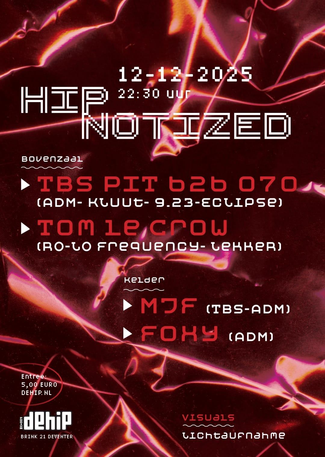 De laatste kans (van dit jaar) om al je zorgen en frustraties uit je systeem te dansen @ Hipnotized Ook deze vrijdagnacht gooien we je in het diepe en zorgen er ook voor dat je weer veilig boven komt. Verwacht Techno op z’n best; puur, hard en diep. Get Hypnotized! Grote zaal: TBS PIT bsb […]